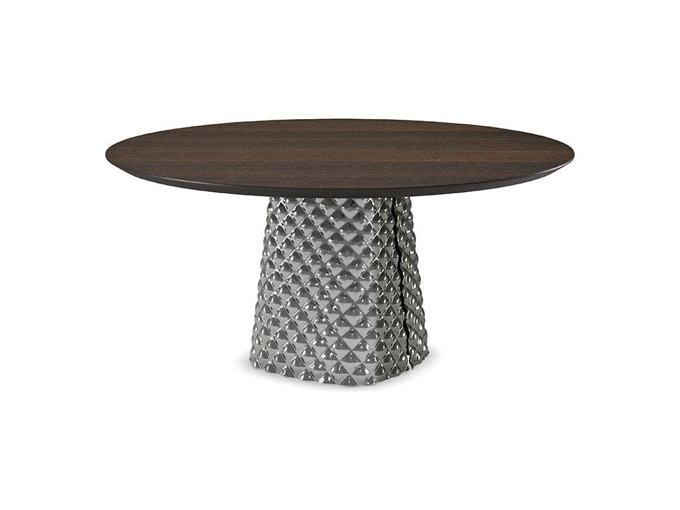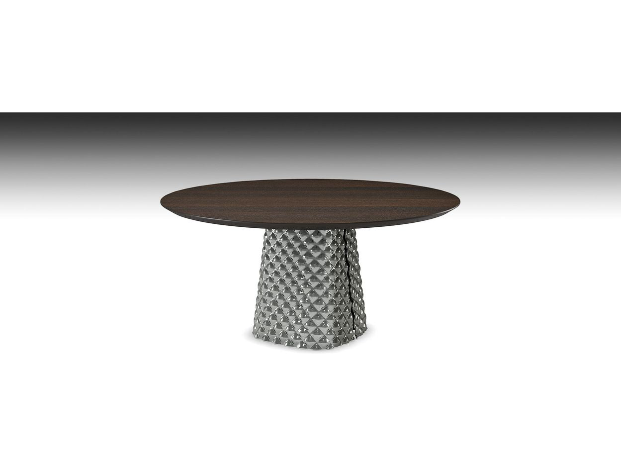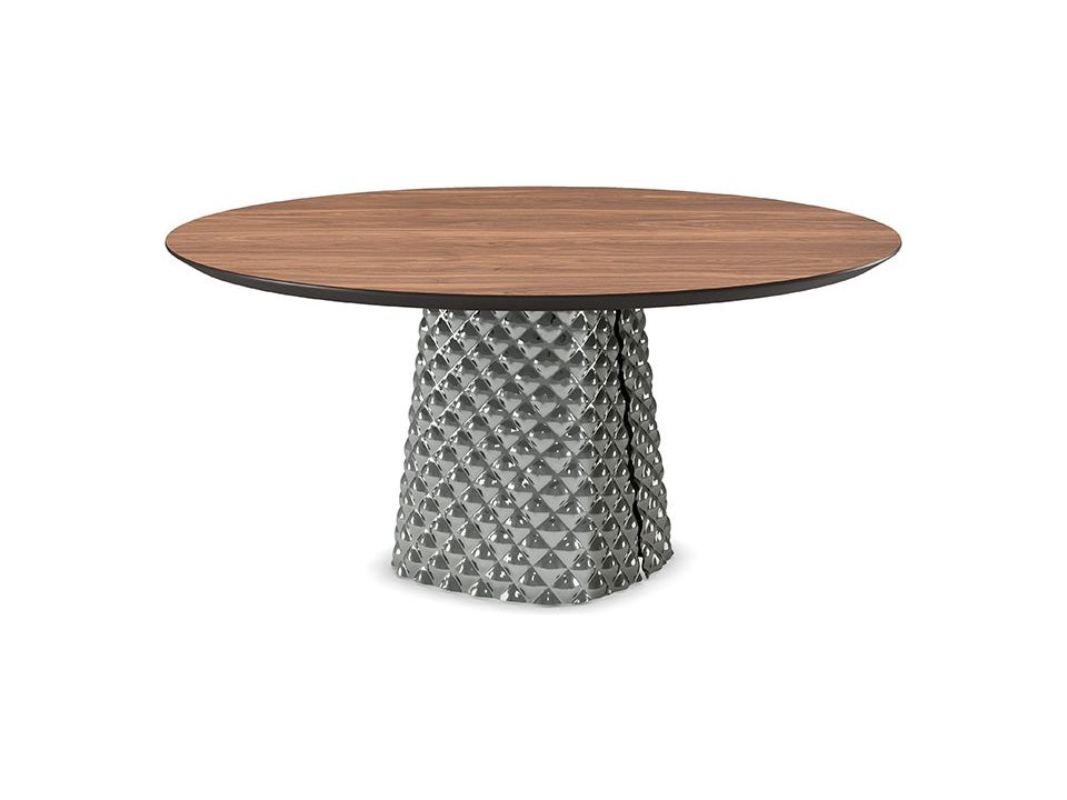 Table with base in mirrored and quilted fumé or bronze curved glass. Top in Canaletto walnut (NC) or burned oak (RB)