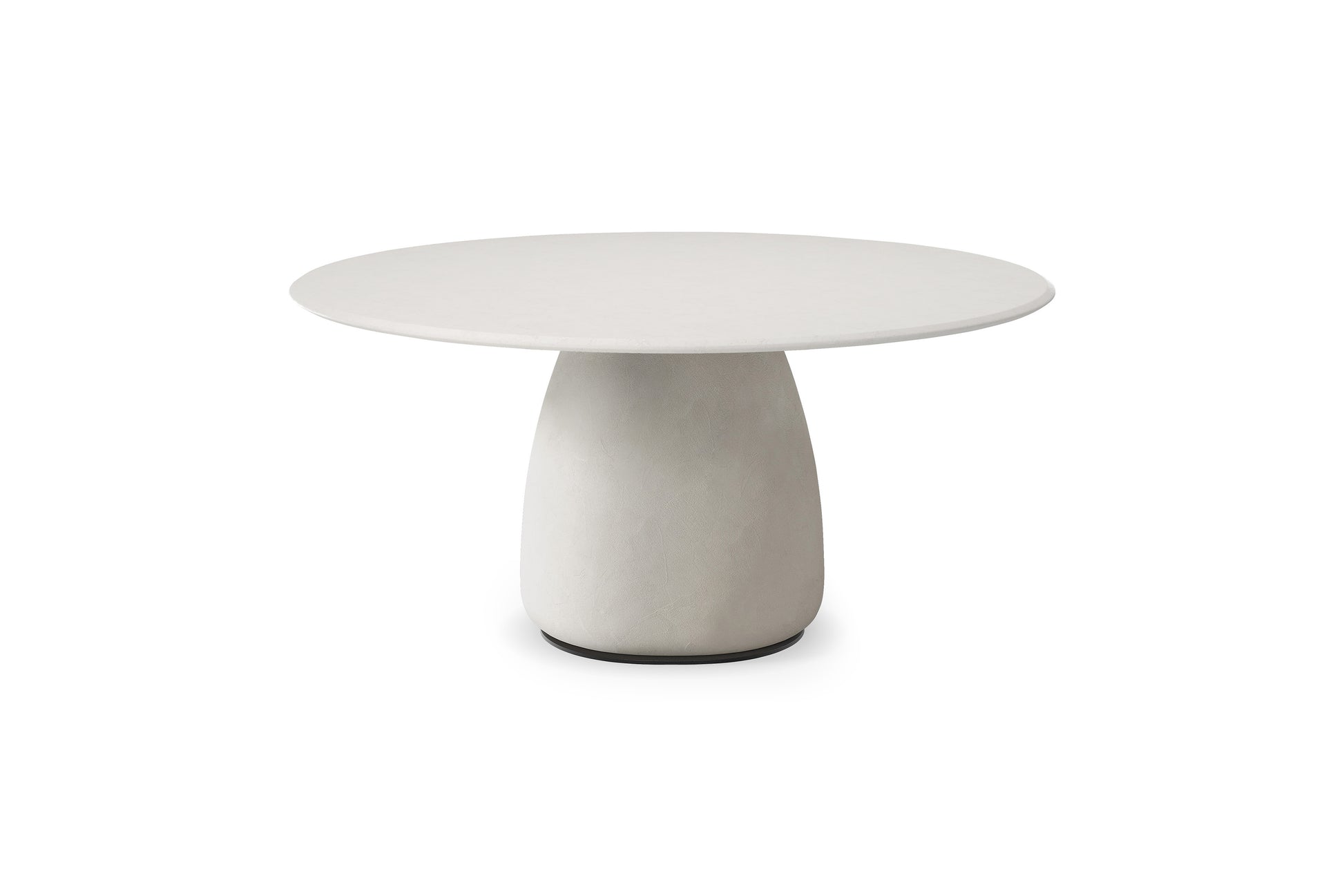 Table with base in polymer clay-spatulated in colours Cairo (AR05), Oslo (AR09) or Marrakech (AR11). Base plate in black (GFM73) embossed lacquered steel. Top in MDF clay-spatulated in colours Cairo (AR05), Oslo (AR09) or Marrakech (AR11)