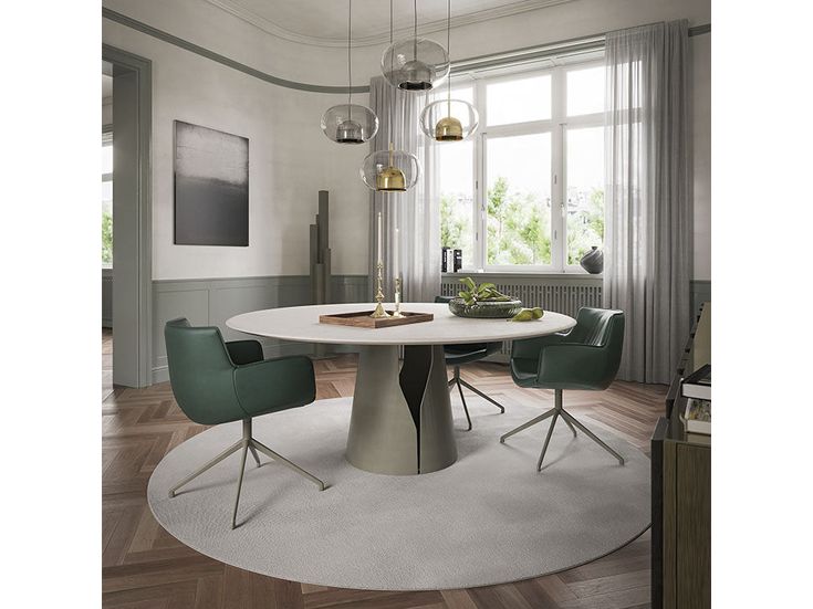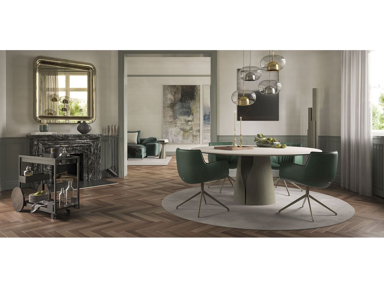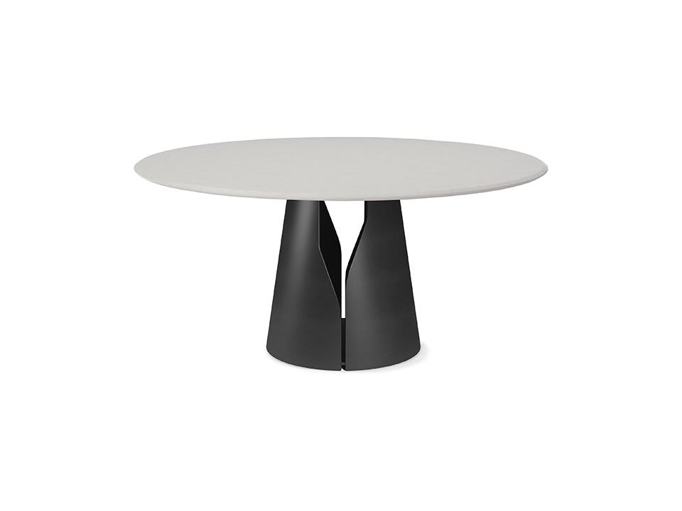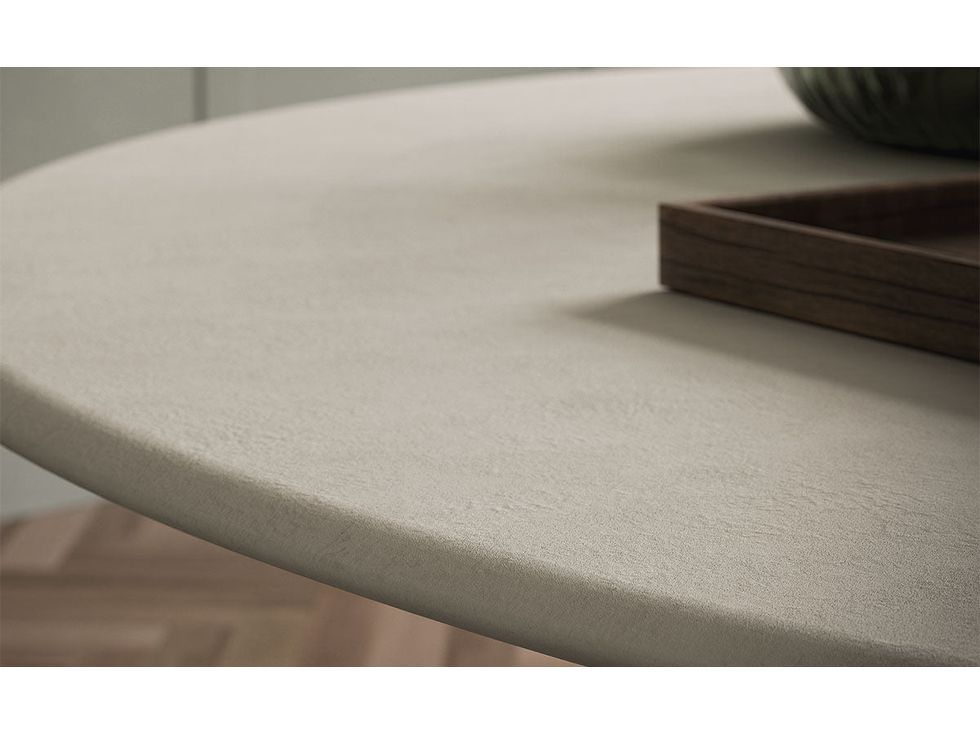 Table with base in titanium (GFM11), bronze (GFM18), graphite (GFM69), pearl (GFM70) or black (GFM73) embossed lacquered steel. Top in MDF clay-spatulated in colours Havana (AR04), Cairo (AR05) or Oslo (AR09)