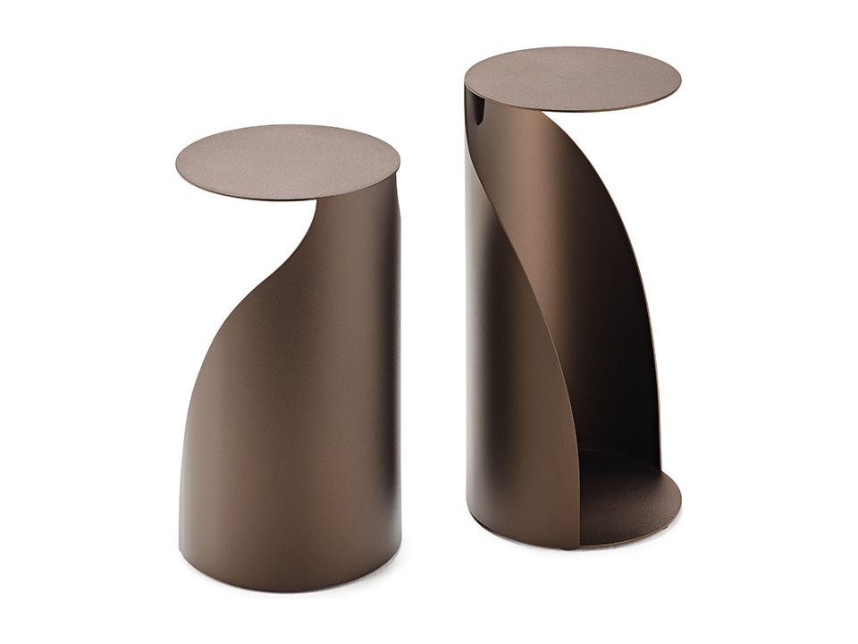 Coffee table in titanium (GFM11) or bronze (GFM18) embossed lacquered steel.