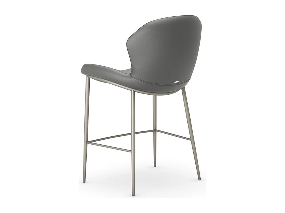 Stool with frame in titanium (GFM11), bronze (GFM18), graphite (GFM69), pearl (GFM70) or black (GFM73) embossed lacquered steel. Cover in fabric, micro nubuck, soft leather or synthetic leather as per sample card. The cover is not removable