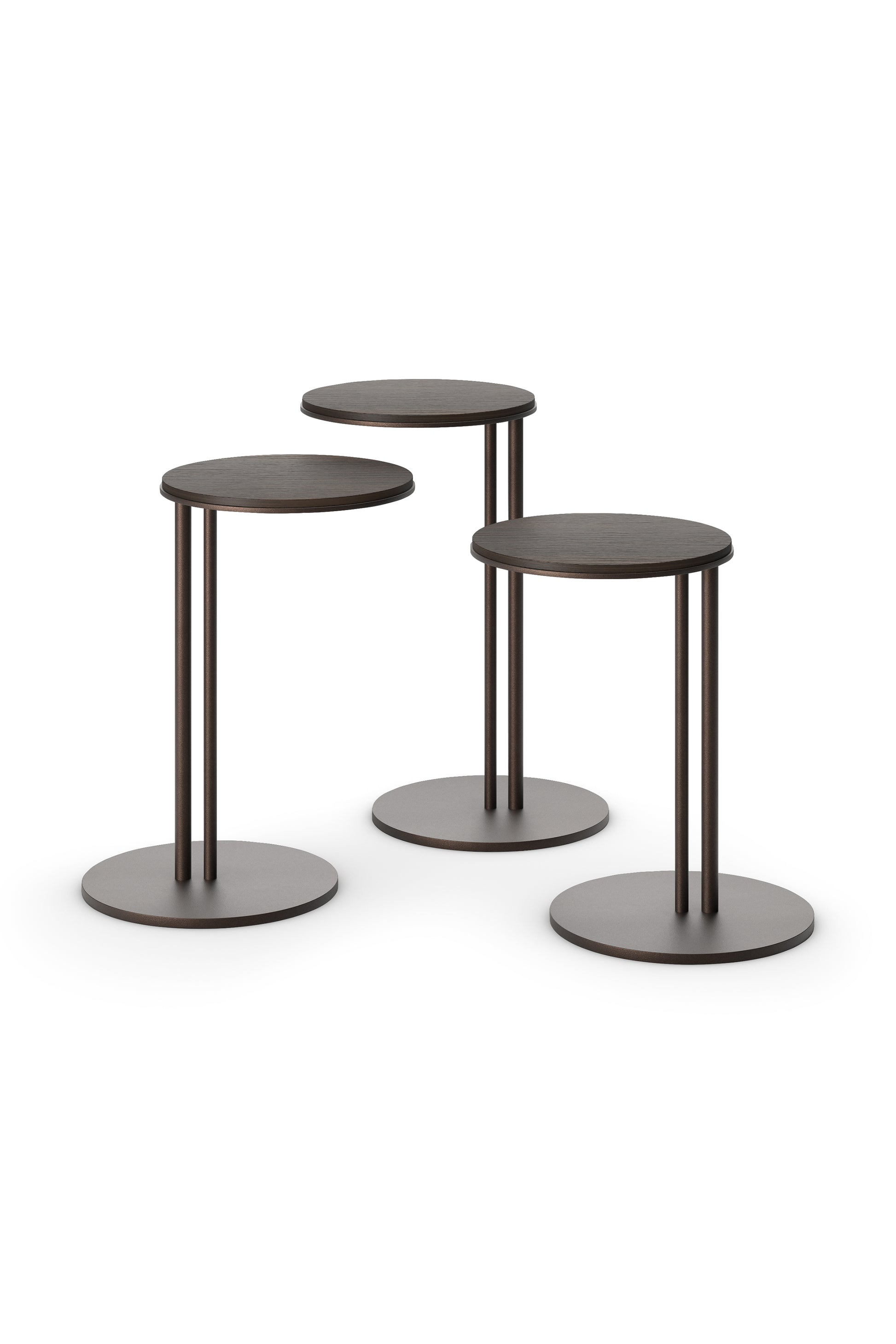 Coffee table with base in titanium (GFM11), bronze (GFM18), graphite (GFM69) or black (GFM73) embossed lacquered steel. Top in Canaletto walnut (NC) or burned oak (RB).